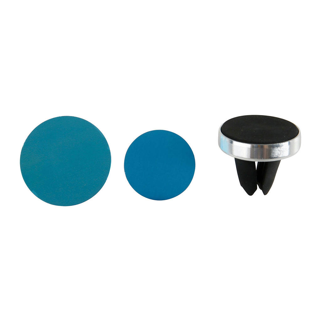 2 plaques aimantées fournies, à positionner derrière le téléphone ou dans la coque du téléphone.
