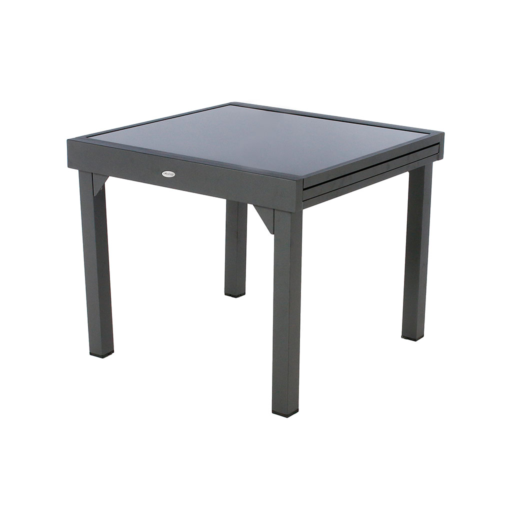 Table de jardin extensible PIAZZA aluminium verre graphite 4/8 personnes - HESPÉRIDE