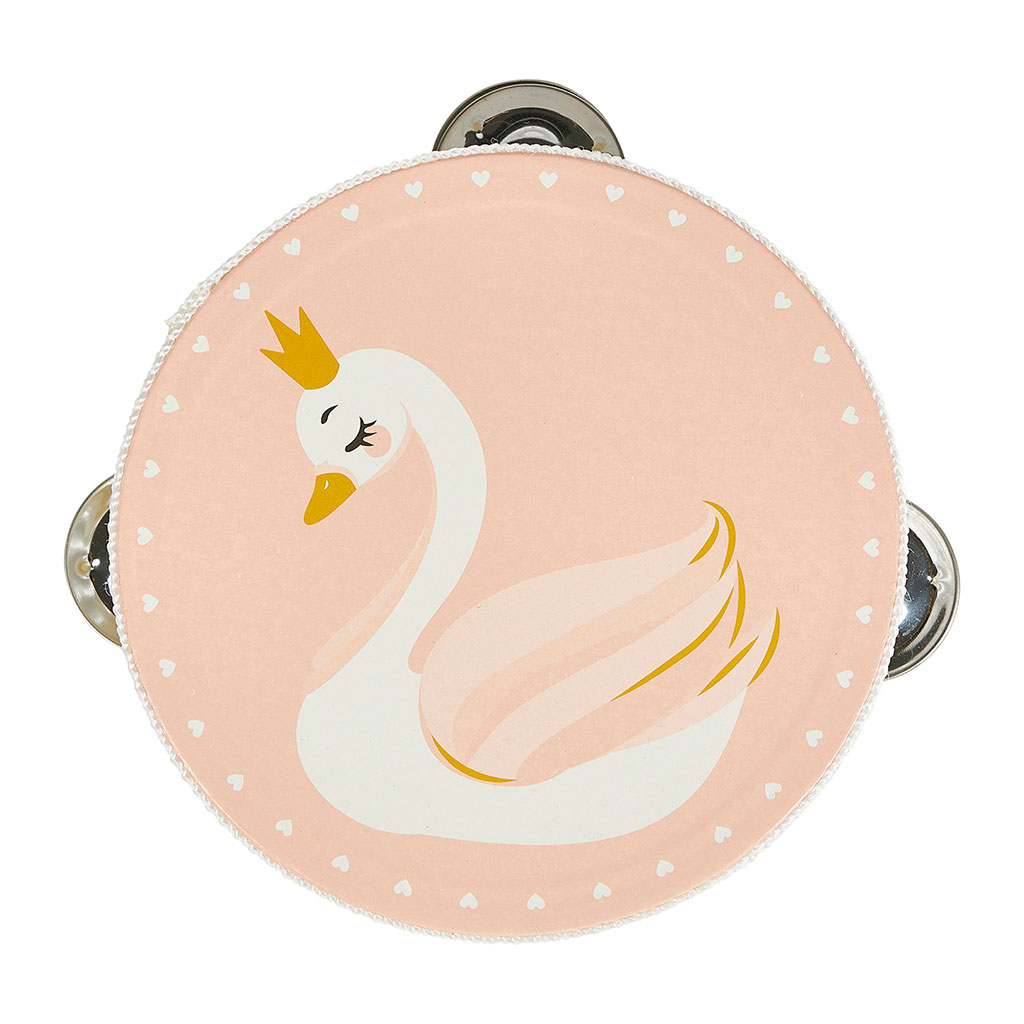 Initiez votre enfant au monde de la musique grâce à ce joli tambourin en bois décoré d'un cygne !