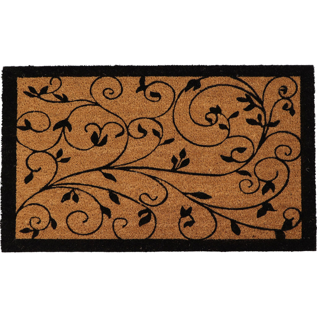 Ce tapis rectangulaire et joliment décoré de volutes et feuilles trouvera sa place dans votre entrée.