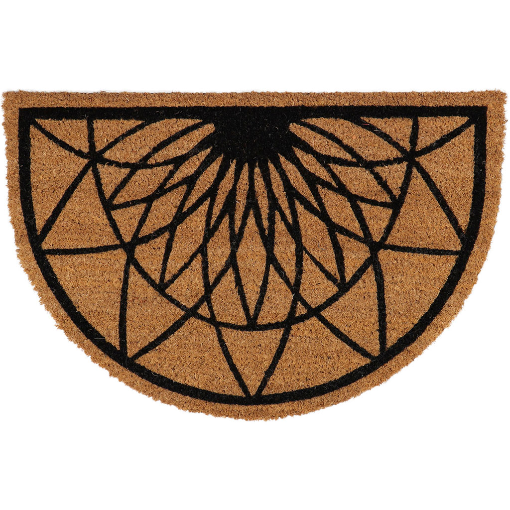 Ce tapis à la forme demi-lune et décoré d'un joli motif géométrique trouvera sa place dans votre entrée.