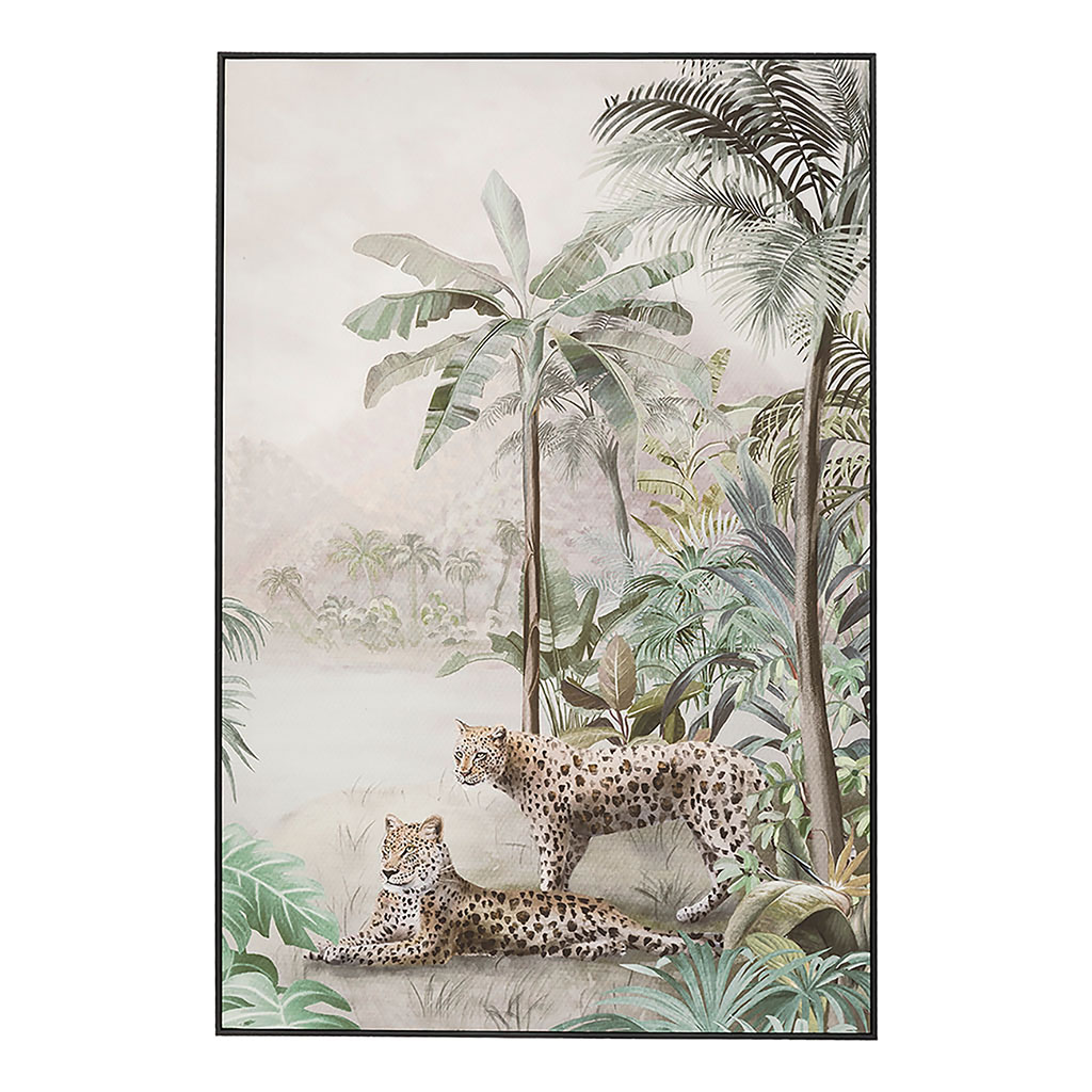 Les amoureux du style exotique seront comblés en affichant cette toile représentant des léopards aux couleurs douces et apaisantes.