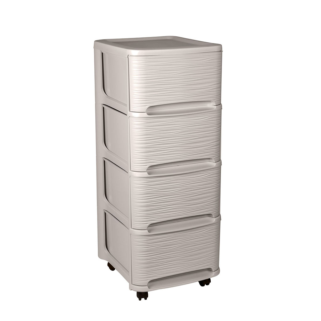 Tour de rangement à roulettes STONE 4 tiroirs beige 37x32x80cm