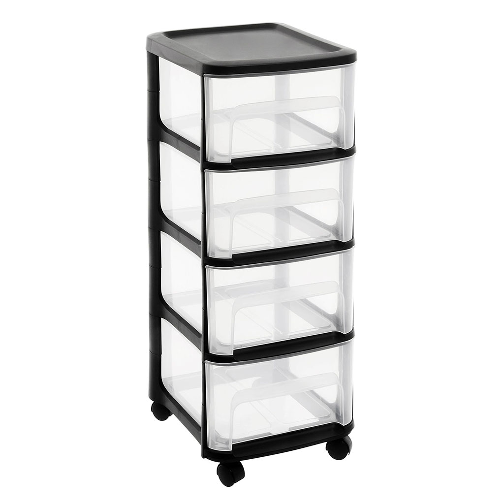 Cette tour de rangement à 4 tiroirs en plastique est idéale pour organiser votre papeterie ou vos objets du quotidien.