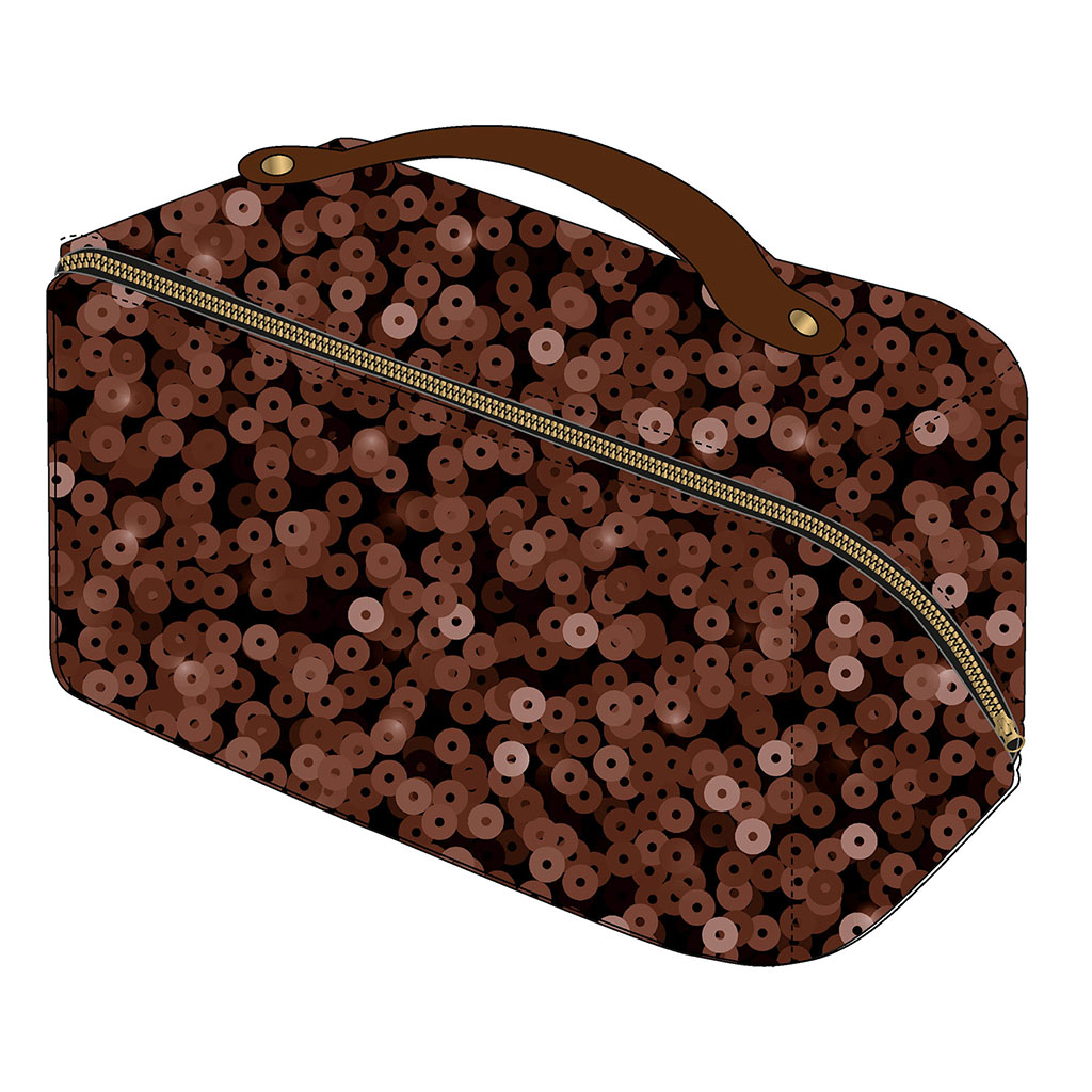 Craquez pour cette trousse de toilette sequin marron, parfaite pour vos déplacements ou votre salle de bain.